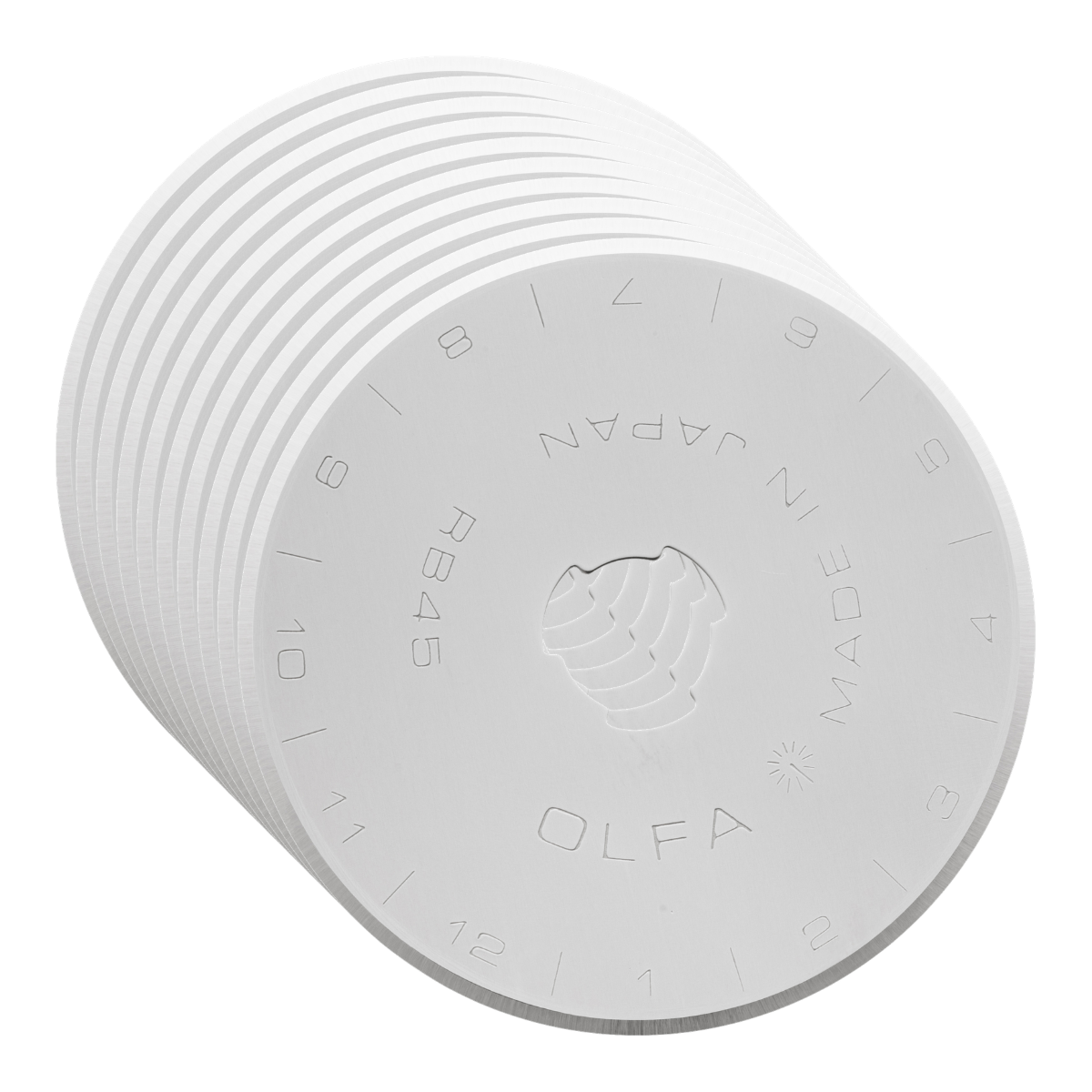 Diese OLFA®-Rotationsklinge schneidet bis zu sechs Stofflagen gleichzeitig und spart Ihnen so wertvolle Zeit. Da die Klinge aus Wolfram-Werkzeugstahl besteht, behält sie ihre scharfe Kante und spart Geld.